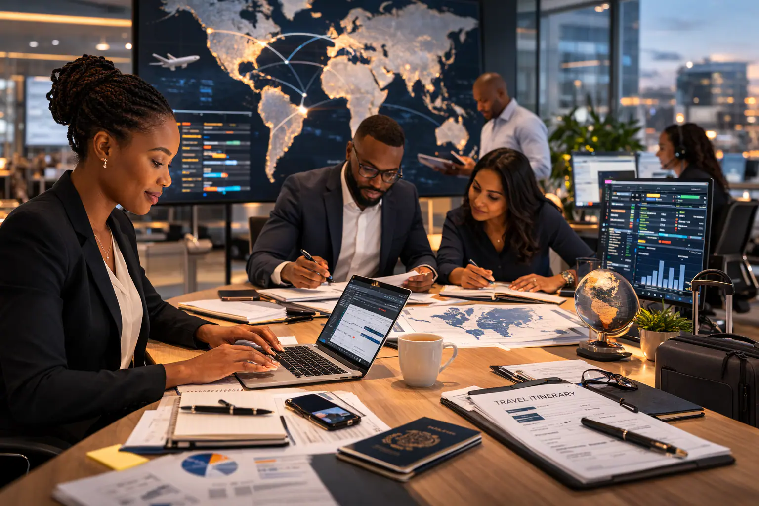Policy-aligned briefsThree-quote workflows, exception logic, and approval-ready options.Quote comparisonClear fare, timing, and supplier trade-offs before commitment.Readiness inputsDestination guidance, visa prep, and traveller profile checks.